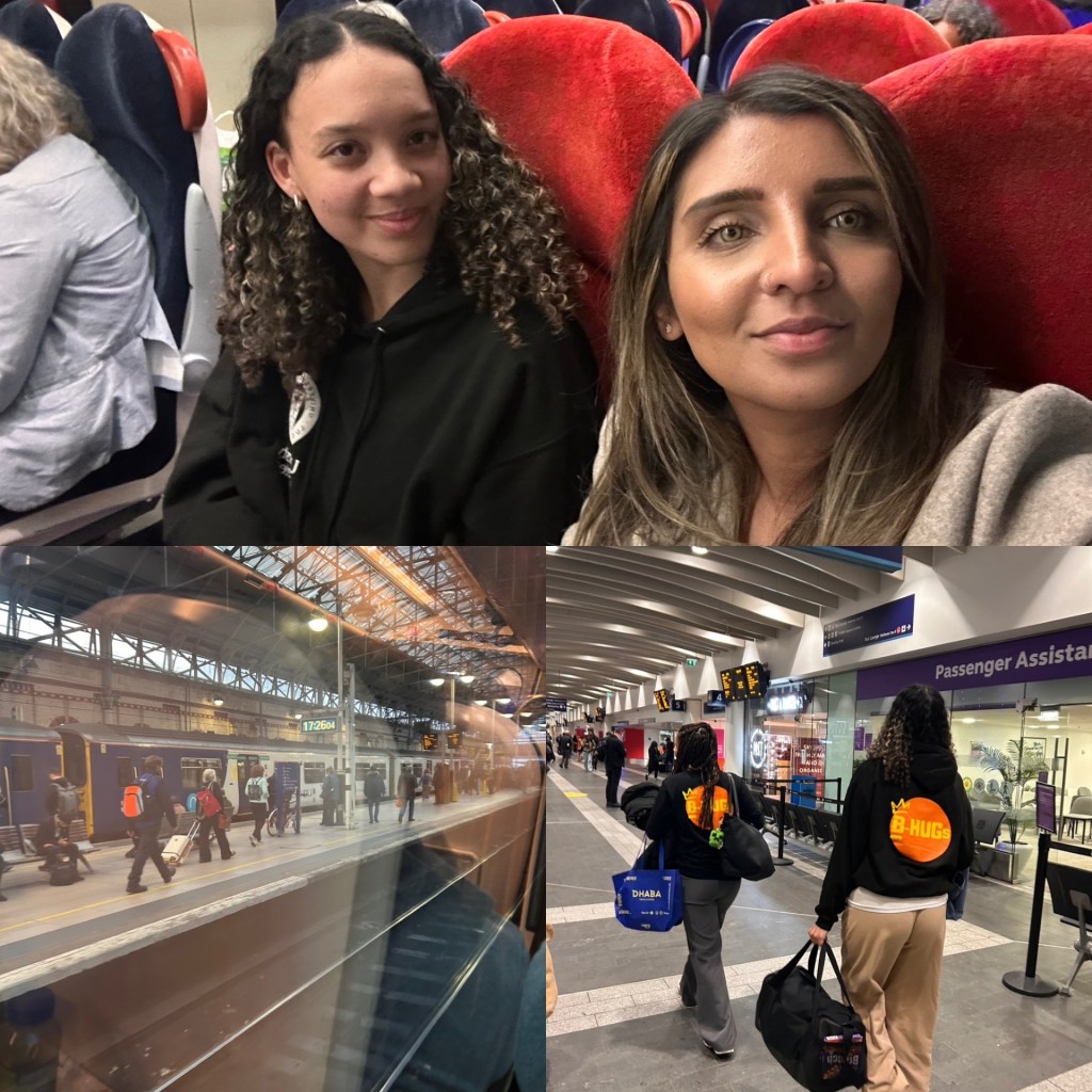 Our journey began with a bit of magic – four separate establishments, four taxis, and somehow we all made it to the station in time to catch an earlier train, dodging the post-school rush. The train ride was full of energy: ideas, reflections, and pride in how far we’d come. We spoke about securing funding, inspiring young people, and the emotional impact of the Futures Festival weekend just gone; it was the first time we felt the true ripple effect, and it was so great to hear parent feedback and getting them excited for the next phase and plans .
